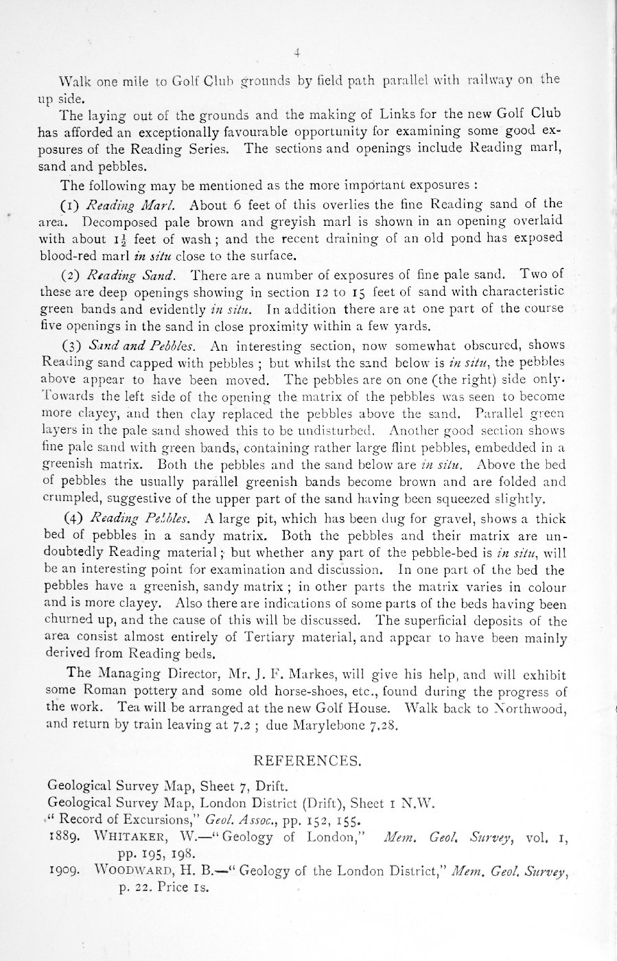 Geologists' Association Circular No. 118. p. 4. Excursion to Sandy Lodge Golf Club, Northwood. Saturday, April 16th, 1910.