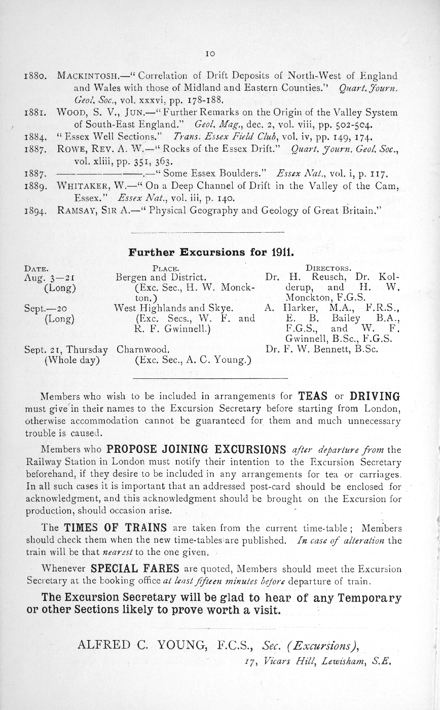 Geologists' Association Circular No. 135. p. 10. Excursion to Newport, Audley End, and Saffron Walden, Saturday, July 22nd, 1911.