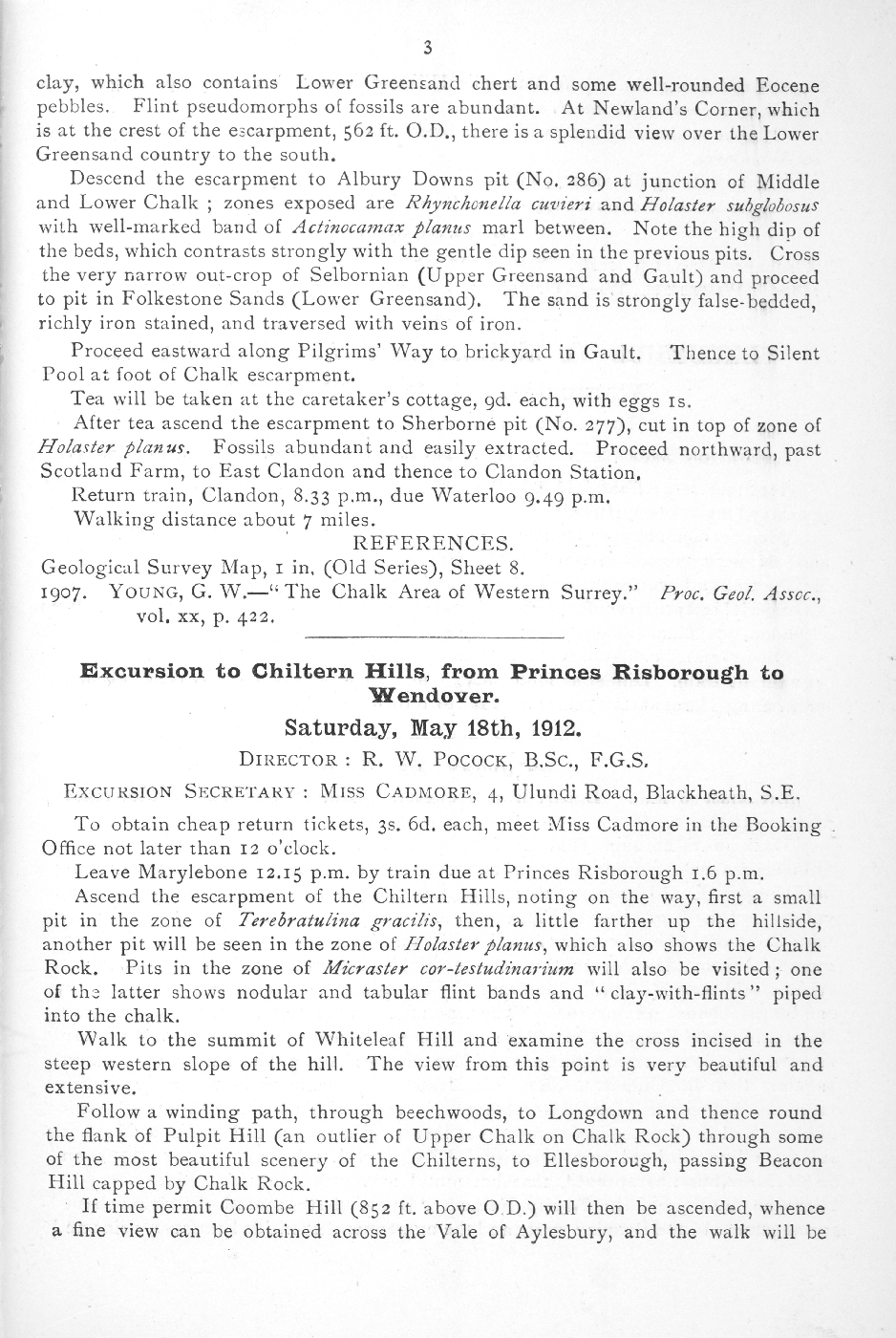 Geologists' Association Circular No. 144. p. 3. Excursion to Chiltern Hills, from Princes Risborough to Wendover. Saturday, May 18th, 1912.