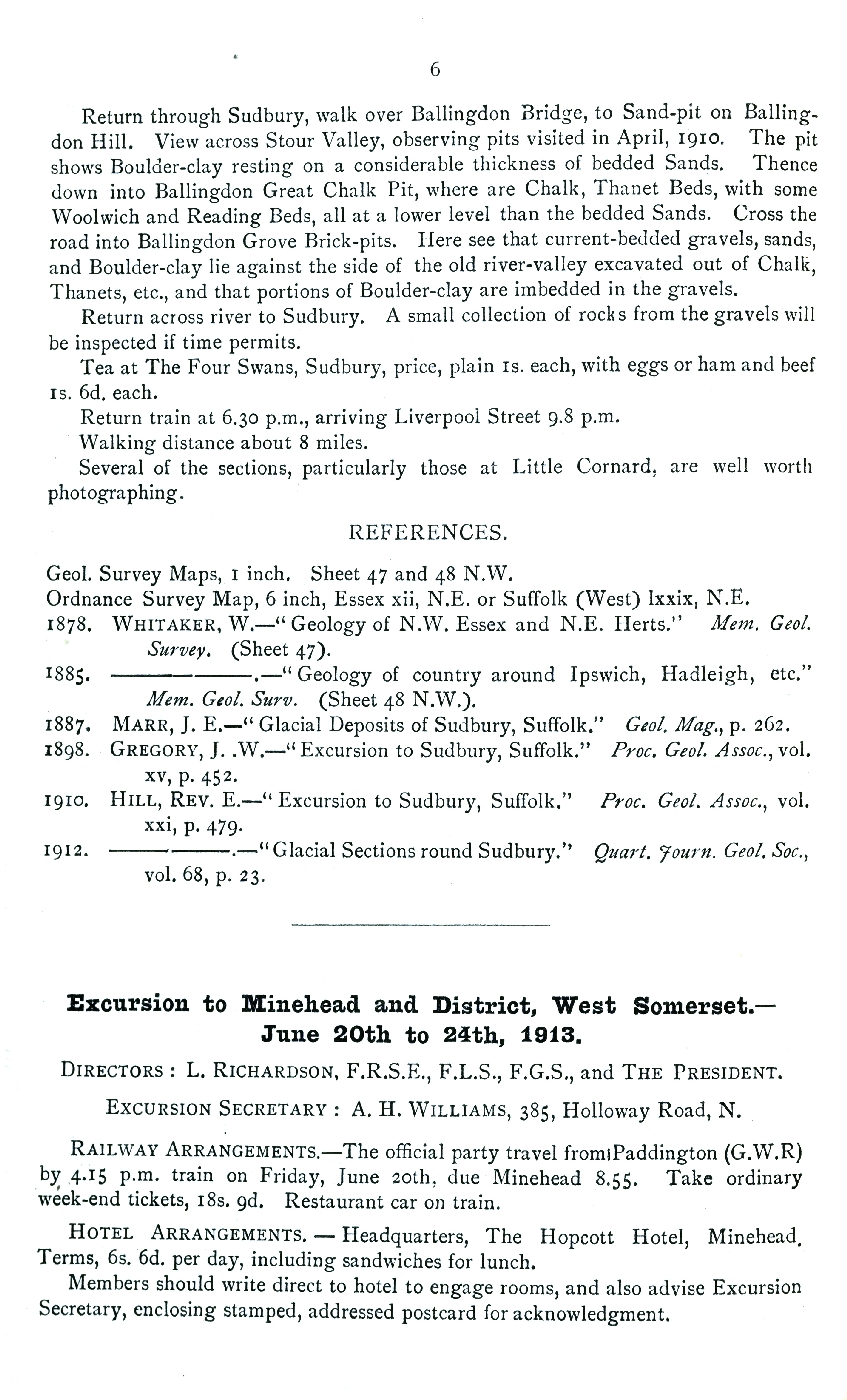 | description | English: Geologists' Association Circular No. 156. Session 1912–1913. p. 6. Excursion to Minehead and District, West Somerset. June 20th to 24th, 1913. |