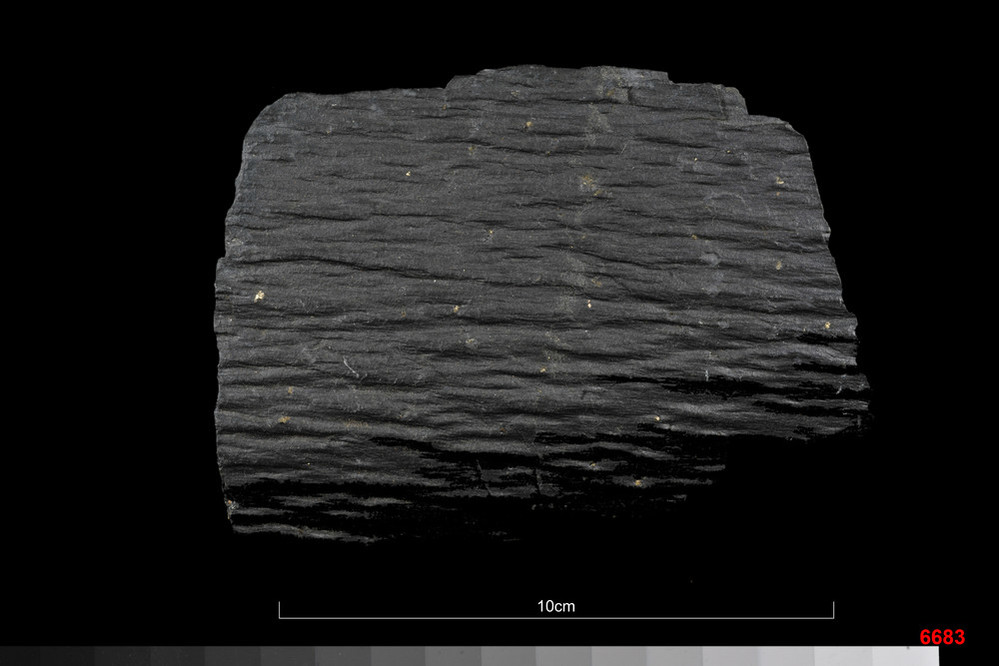 | description | English: Easdale slate. Quarry East of Killside, about 10 miles South West of Oban, Scotland. Econ. 6683. P750389. |