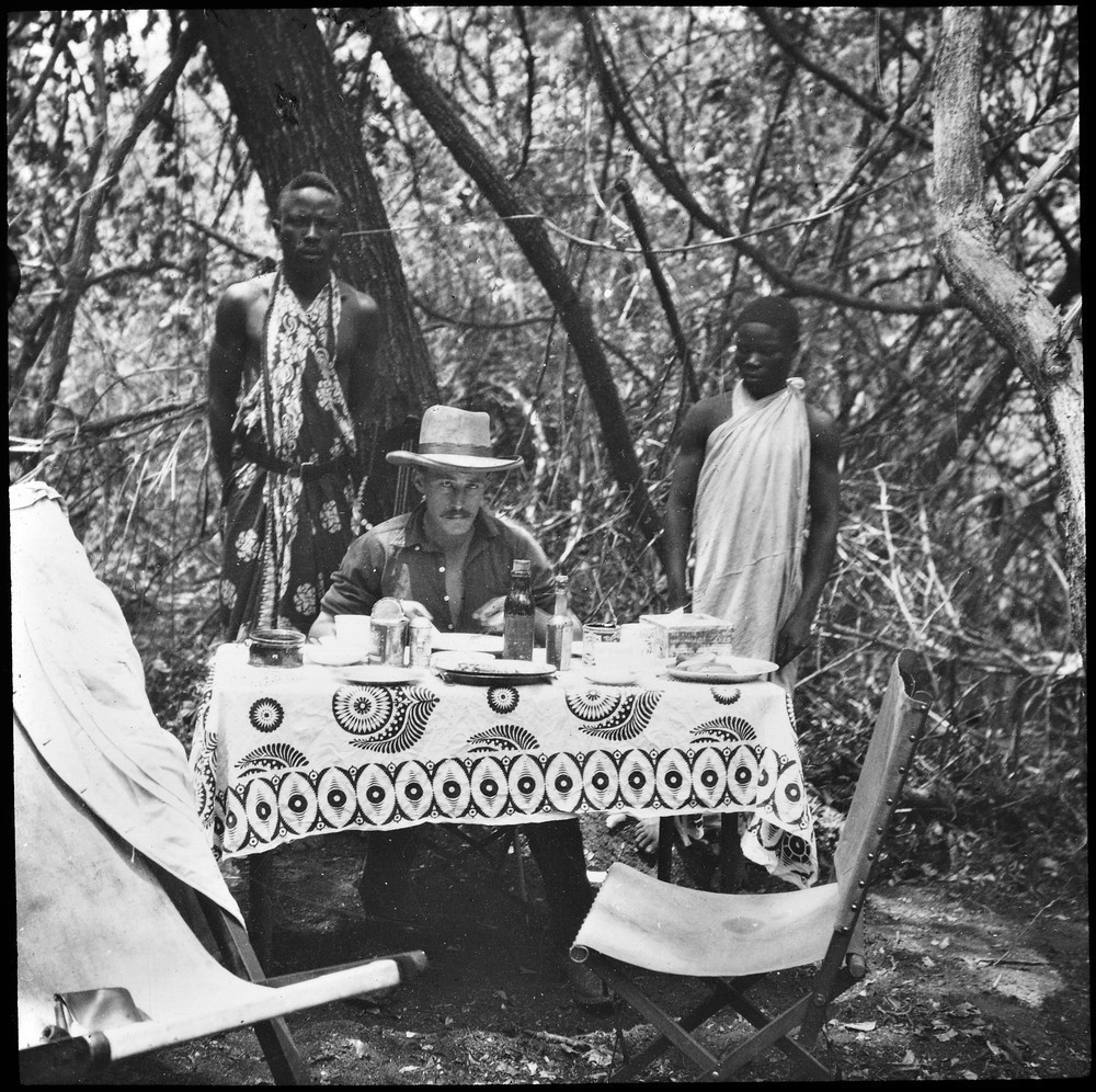| description | English: Surveyor having dinner in the field |