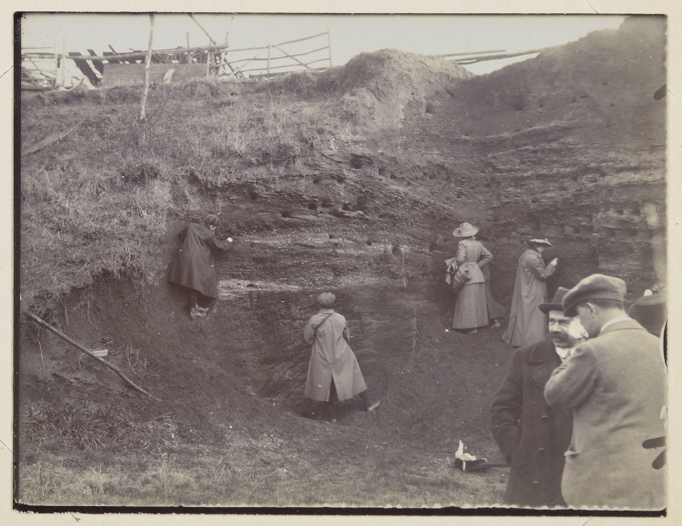 | description | English: Red Crag sections near Rookery Farm. Excursion to Bentley Suffolk, April 5th 1913. [Several people.]. From: T W Reader geological photographs 1913. Geologists' Association Carreck Archive. BGS image P804528. |