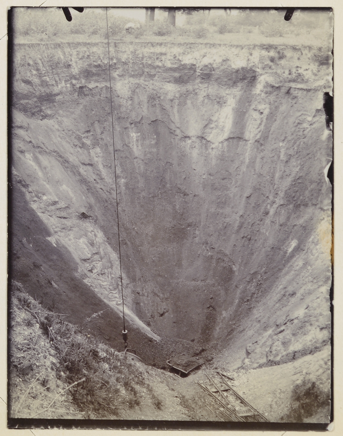 | description | English: Crater pit near Bowman's Lodge. Excursion to Dartford Heath, May 17th 1913. From: T W Reader geological photographs 1913. Geologists' Association Carreck Archive. BGS image P804564. |