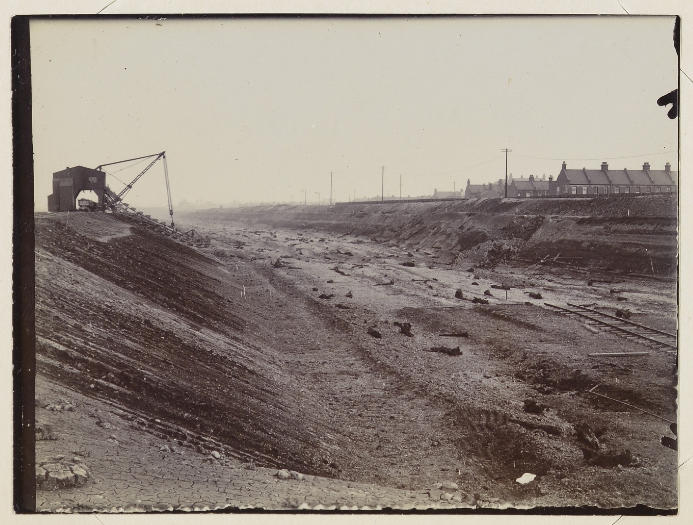 | description | English: Alluvial clay and peat resting on ballast showing the ?snags? or yew trunks brought down by the old river. Excursion to Royal Albert Docks, October 4th 1913. From: T W Reader geological photographs 1913. Geologists' Association Carreck Archive. BGS image P804631. |