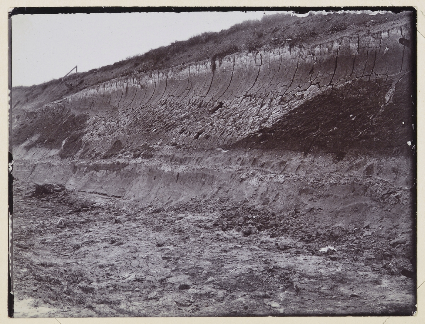 | description | English: Clay filling a washout in peat. Excursion to Royal Albert Docks, October 4th 1913. From: T W Reader geological photographs 1913. Geologists' Association Carreck Archive. BGS image P804635. |