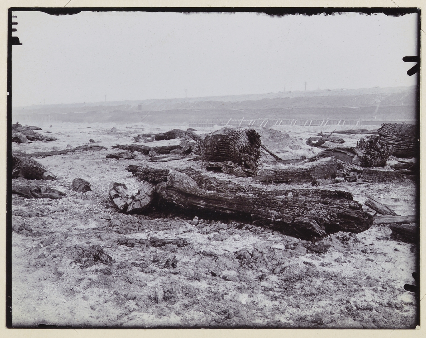 | description | English: Snags or yew trunks brought down by the old river. The wood is still so firm that the teeth of the land dredger will not cut through them so they are left to dry. Excursion to Royal Albert Docks, March 21st 1914. From: T W Reader geological photographs 1914, 1916. Geologists' Association Carreck Archive. BGS image P804647. |