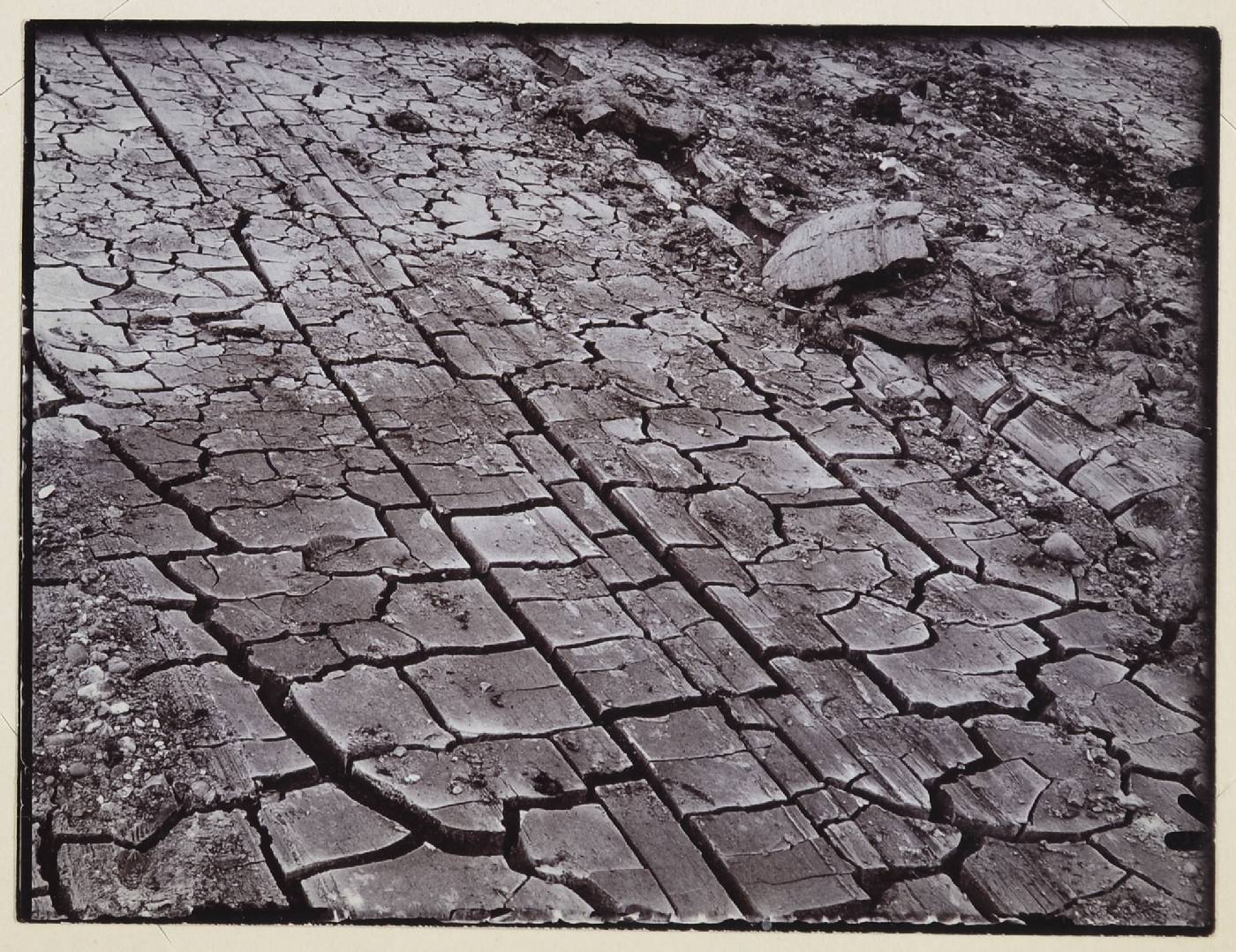 | description | English: Sun cracks in alluvial clay exposed by mechanical digger. Excursion to Royal Albert Docks, March 21st 1914. From: T W Reader geological photographs 1914, 1916. Geologists' Association Carreck Archive. BGS image P804656. |
