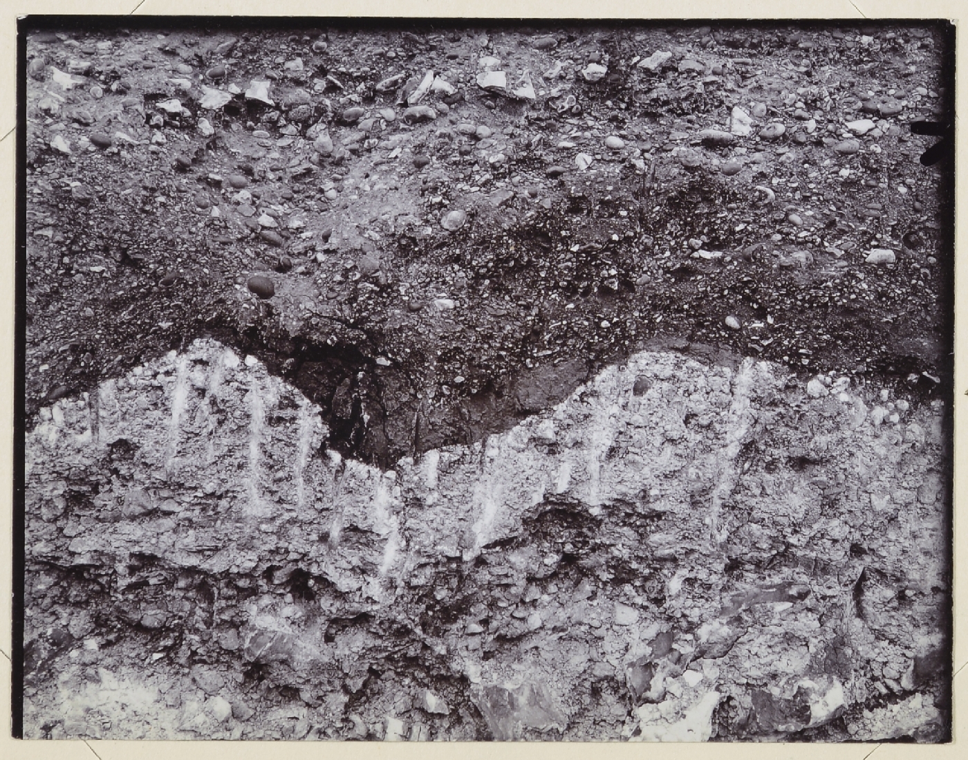 | description | English: Stone Court Gravel Pit, west side of Cotton Lane. Excursion to Greenhithe, April 25th 1914. Added note: Thanet Sand in hollows on Chalk; Gravel. [Bottom to top.]. From: T W Reader geological photographs 1914, 1916. Geologists' Association Carreck Archive. BGS image P804674. |