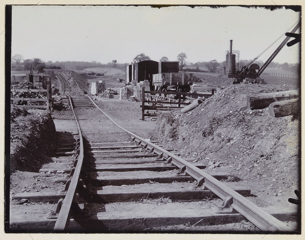 The Switchback. This line under construction is the continuation from Hertford to Knebworth. Excursion to Hertford and Stevenage, May 2nd 1914. For about six miles the line traverses the western slope of the Stevenage Valley drained by the River Beane which joins the Lea near Hertford. The general character of the country is undulating.