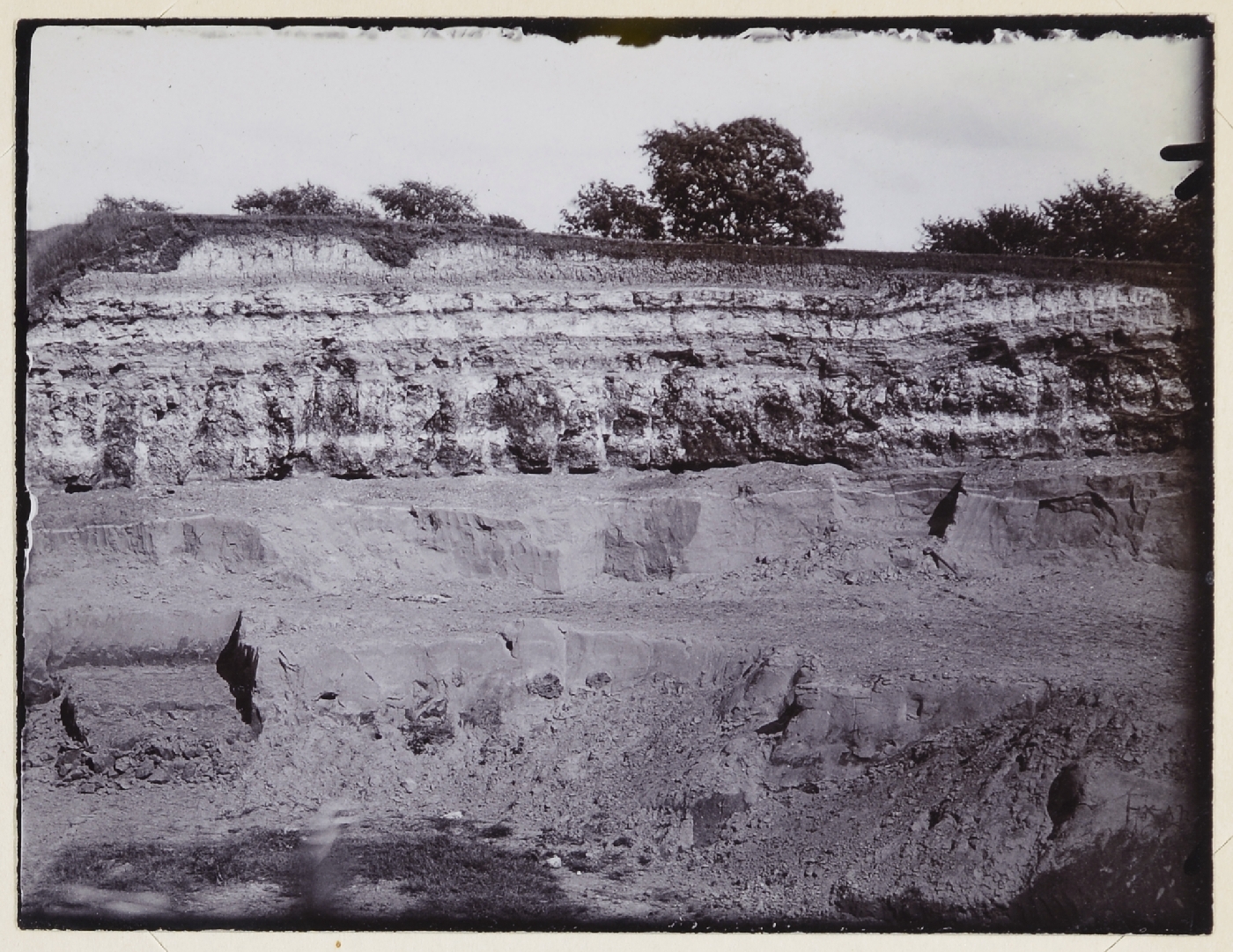 | description | English: Warren Farm sand pit. Excursion to Soulbury, Stewkley and Wing, July 18th 1914. This is the most northerly occurrence in England of typical Portland Beds. Here we have the sand below, then the limestone with large specimens of Perisphinctes and the Purbeck Beds on top. Added note: Portland Sand; Portland Limestone; Purbeck. [Bottom to top.]. From: T W Reader geological photographs 1914, 1916. Geologists' Association Carreck Archive. BGS image P804767. |