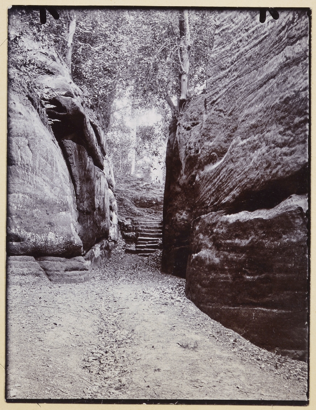 | description | English: High Rocks, Tunbridge Wells. These Wealden rocks which are such an important feature in this part of Kent are the upper beds of the Hastings Sands. Excursion to Tunbridge Wells, May 13th 1916. They have the appearance of being very hard and massive but generally it is the outside only which is hard, so that if this shell is removed the inside can be easily broken down by the fingers. They appear to have been preserved by the regular size of the sand grains of which it is built up and to their planes of division being regular and few joints to allow the wind and rain to penetrate. From: T W Reader geological photographs 1914, 1916. Geologists' Association Carreck Archive. BGS image P804789. |
