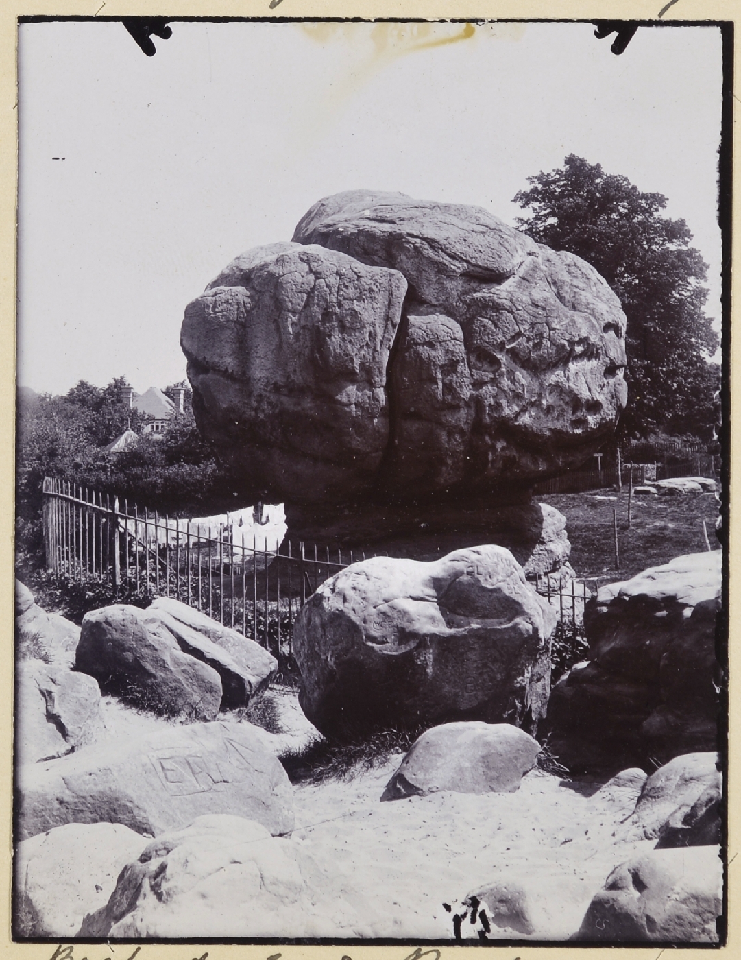 | description | English: Rusthall Common. Back of Toad Rock. Excursion to Tunbridge Wells, May 13th 1916. The Toad Rock is a ?land stack? the general form of which has been determined by the intersection of joints, its isolated position being due to circum-denudation while the usual undercutting has contributed towards the striking resemblance to a toad. From: T W Reader geological photographs 1914, 1916. Geologists' Association Carreck Archive. BGS image P804801. |