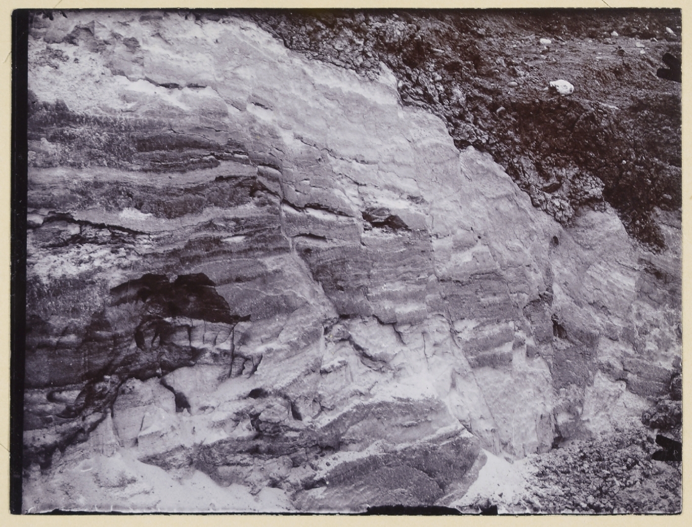 | description | English: Faulting in Reading Sands covered with Reading pebble drift. Excursion to Coweroft Brickfield, Chesham, July 15th 1916. From: T W Reader geological photographs 1914, 1916. Geologists' Association Carreck Archive. BGS image P804827. |