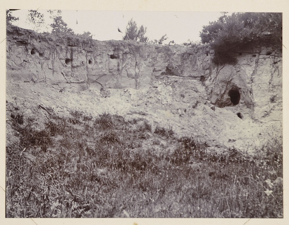 One-tree Hill pit in Bagshot Sands. Prehistoric burial found at right hand side. Excursion to Laindon Hills, July 13th 1907. BGS image P805274.