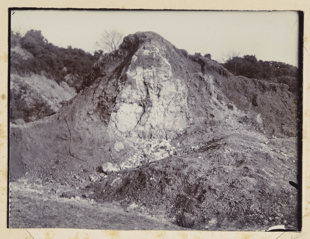 | description | English: Large pit abutting on the southern side of the road in the pebble beds of the Blackheath series resting on Chalk, a huge mass is seen rising up suddenly from the pebble beds to a few feet of the surface. Excursion to Worms Heath, April 2nd 1910. BGS image P805350. |
