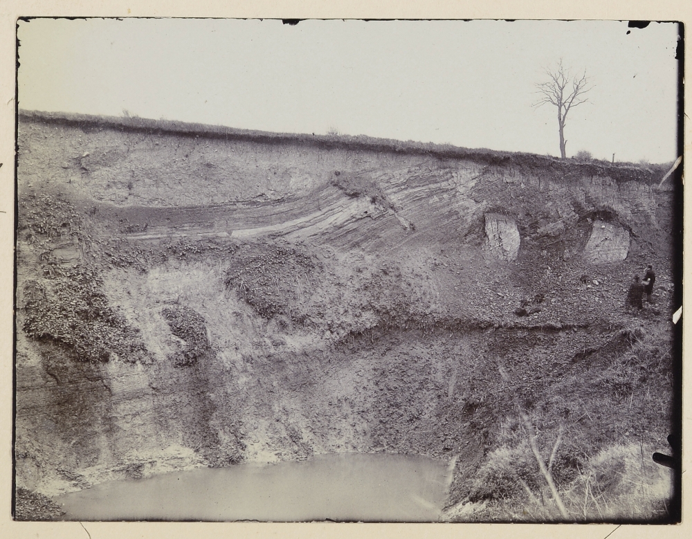 | description | English: Lower Gallows Hill pit. Boulder clay filling a hollow formed by bending of silt beds. Excursion to Sudbury, Suffolk, April 23rd 1910. Added note: Bedded silts; Boulder clay. [Bottom to top.]. BGS image P805366 . |