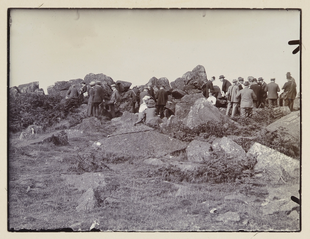 | description | English: Coarse felsitic agglomerates on Timberwood Hill, overlooking the central part of the Charnwood Forest district. Excursion to Charnwood Forest, September 8th 1910. BGS image P805400. |