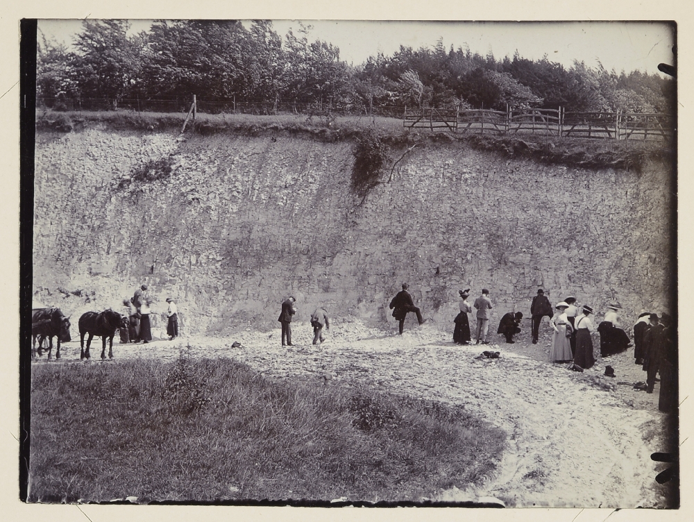 | description | English: Chalk pit in Guildford Road, West Clandon Village. Marsupites zone. (Pit no. 281.). Excursion to Clandon, May 11th 1912. BGS image P805510. |