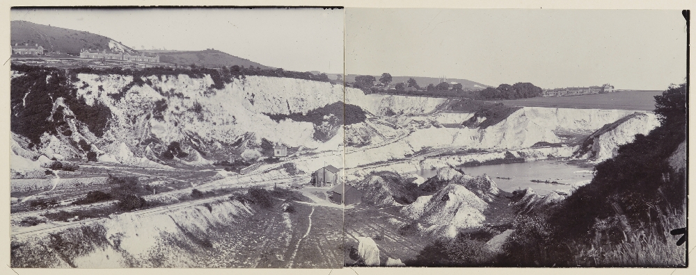 | description | English: Chalk workings locally known as 'Millbay'. Chalk Marl, Schloenbachia varians zone. Excursion to Borstal, June 22nd 1912. [Two photographs combined to give continuous landscape view.]. BGS image P805538. |