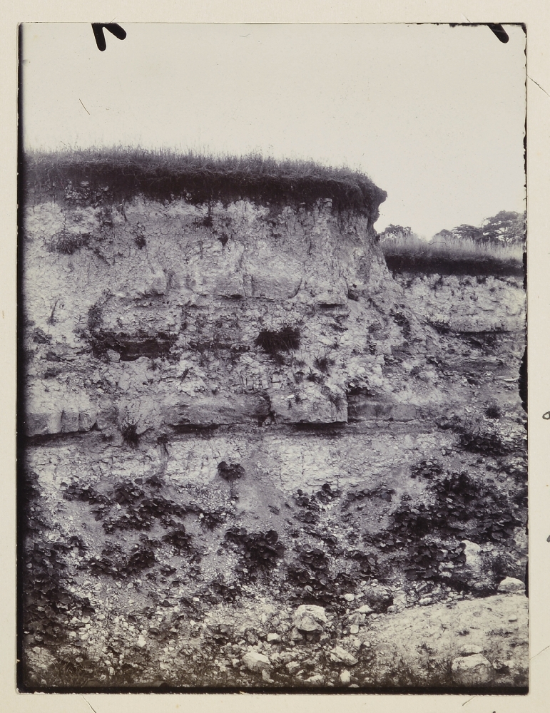 | description | English: Bugle Pit, Hartwell, in Middle or Upper and Lower Purbecks. Excursion to Aylesbury, Hartwell and Stone, July 27th 1912. The most well known fossil from this pit is the large Ammonite (Perisphinctes boloniensis) which is frequently seen built into the walls of Hartwell Park and other buildings as ornament. Added note: Pendle of Upper Portland, Ammonites boloniensis; Lower Purbeck; Middle or Upper Purbeck; Stony clay. [Bottom to top.]. BGS image P805585. |