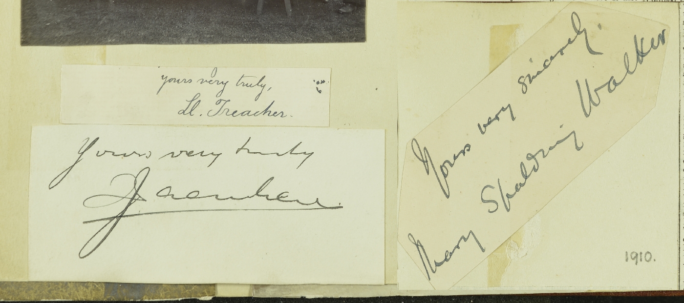| 19:29, 8 September 2020 | GA Image 0141.jpg (file) | 1.42 MB | Ursula Lawrence | Edinburgh 1913 [Long Excursion to Edinburgh August 1st to 9th, 1913.] Signatures of F W Penny; John S Flett; Talbot H Whitehead; R W Pocock; Edward W Tunbridge; Eileen M L Hendriks; W T Gordon; J C McGiven; Miss Pearse; Miss Bauer; Miss Cadmore; Winnie, Enid, Harold Flett [Flett's children on photograph]; Thomas Hall, J M Given; T F Sibley; F B B Williams; H Burls; G W Young; [A] Macconochie; [W F P] McLintock; [C T] Clough; W Whitaker; [W T] Gordon Maris Sophia Johnstone Volume 1 === [... | 1 | |