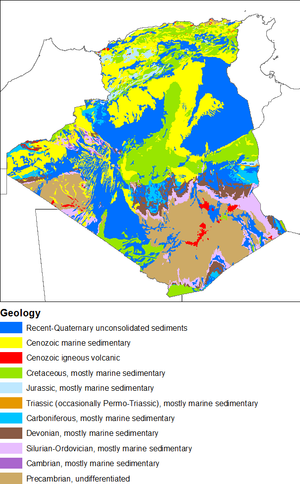 Revision as of 13:40, 18 June 2015 by Beod (talk | contribs) (Beod uploaded a new version of File:Algeria Geology2.png)