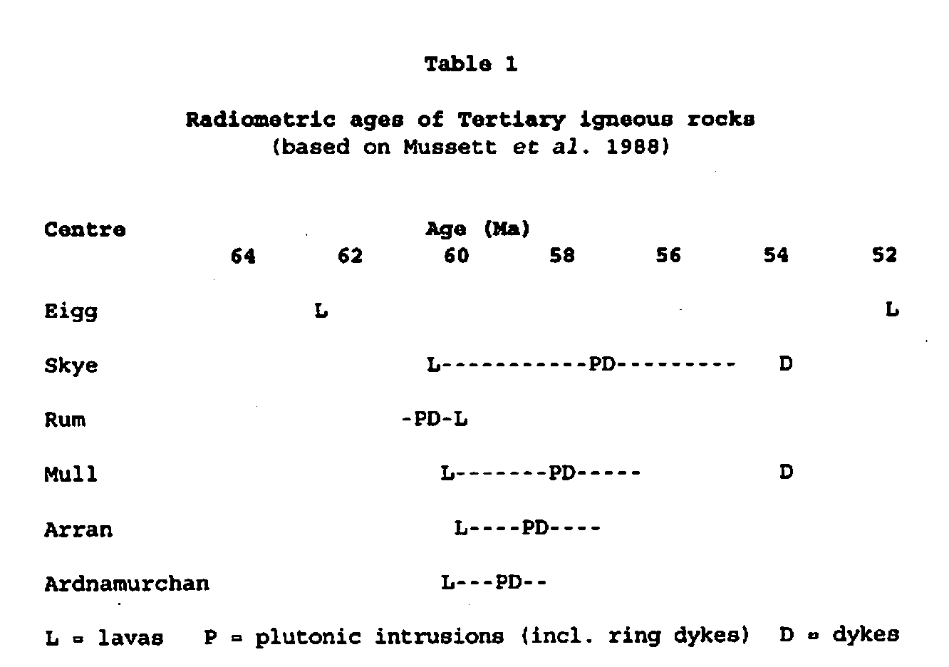 | description | English: Radiometric ages of Tertiary igneous rocks (based on Mussett et al. 1988) From: Gribble, C.D., Durrance, E.M. and Walsh, J.N. 1976 [1996 reprint] Ardnamurchan: a guide to geological excursions. Edinburgh : Edinburgh Geological Society |