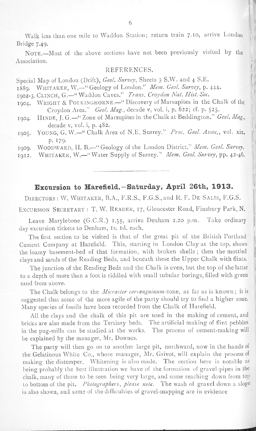 | description | English: Geologists' Association Circular No. 154. Session 1912-1913. p.6. Excursion to Harefield. Saturday, April 26th, 1913. |