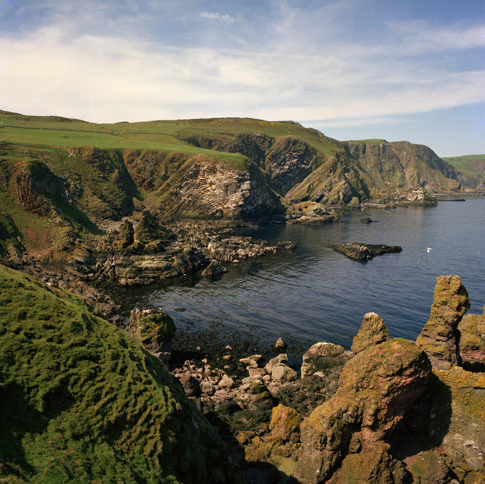 | description | English: Pettico Wick, St. Abb's. Looking westwards to Silurian cliffs. Berwickshire. The rocks are greywackes and siltstones of the Llandovery series folded by repeated broad flexures with an east-north-eastward trend. |