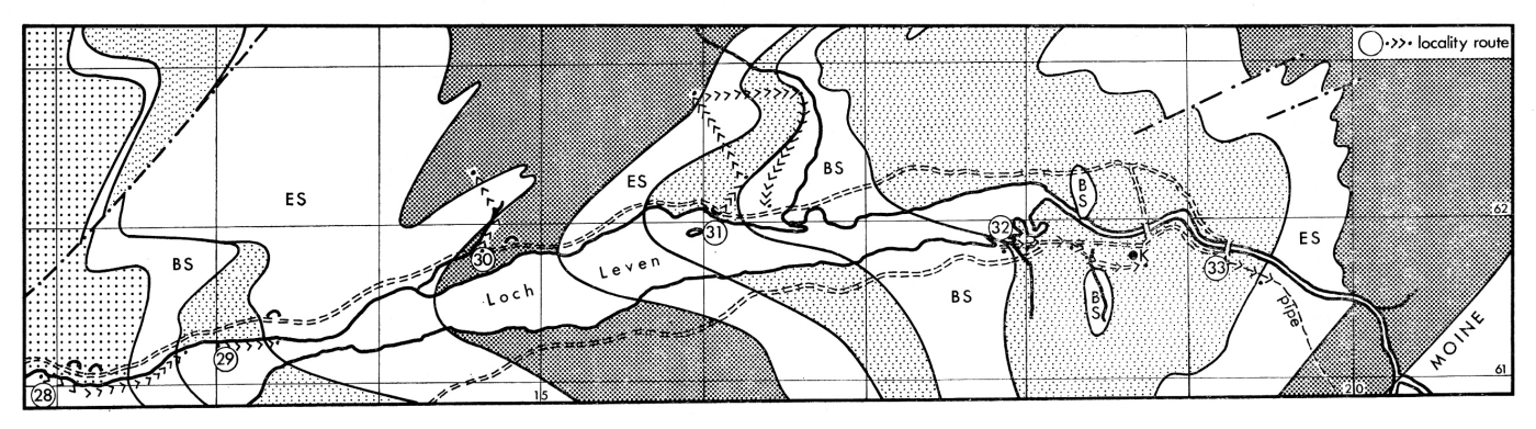 | description | English: Geological map (after Treagus, 1974) of the Kinlochleven area (Excursion 6, localities 28-33). . From: Roberts, J.L. and Treagus, J.E. 1977. 7: The Dalradian rocks of the Loch Leven area. Scottish Journal of Geology v 13. p.165-184. |